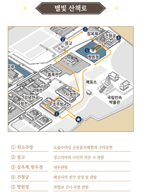 ▶ 관람 동선 : 소주방 → 자경전 → 장고 → 집옥재 → 건청궁 → 항원정